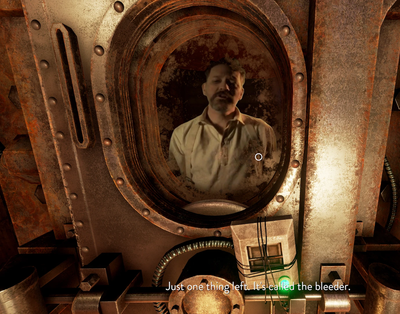 To get to the Bleeder, recall the beginning of the game where you let the Waterfall flow over into the river again. The path is now open to that area again from the top of C.W.'s workshop. C.W. must have been busy and the large metal carts were moved to reveal a door.
