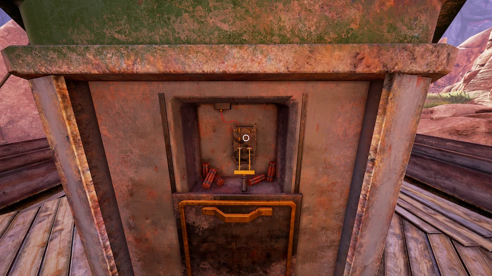 Round the other side, lower the door and connect the dynamite (don't worry, it won't explode yet).