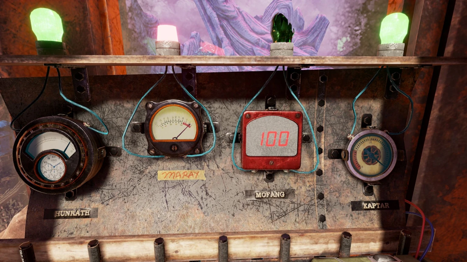 Go all the way back to C.W.'s compound, go into the Mayor's office and take the lift all the way up the Tower. So here is where the signal of the walkie-talkie comes and we have a panel that shows whether all the trees have been watered. The one of Hunrath may be on charging-discharging cycles.