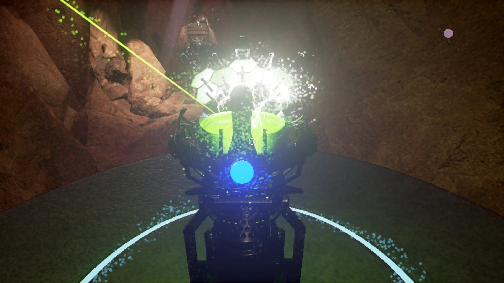 When the mechanism uncovers the upper part of the seed, an action that C.W. calls 'forcing seed open', the seed displays "prep" behavior: it emits an illumination demarcating the radius of the area it will swap. Upon pressing the main button of the device, the swapping is activated. The battery keeps amplifying the ambient membrane power that recharges the seed, so that it charges continuously and can be used again to return almost immeditely. There is an interval, however, for the swapping action to be completed.