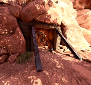 Follow the path into a cave whose entrance you have opened by destroying the blocking rocks with the railcart earlier (see Reactivating Ancient Gears).